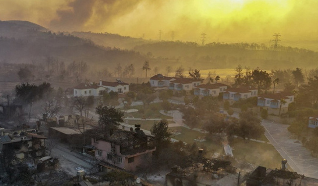 Antalya'da 4 farklı noktada çıkan ve yerleşim yerlerine kadar ilerleyen orman yangını İHA tarafından havadan görüntülendi.