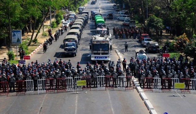 Myanmar'da askeri darbe ve seçilmiş hükümet üyelerinin gözaltına alınmasına karşı protestolar sürerken, ülkede internet bağlantısının kesildiği ve askeri araçların sokaklarda ...