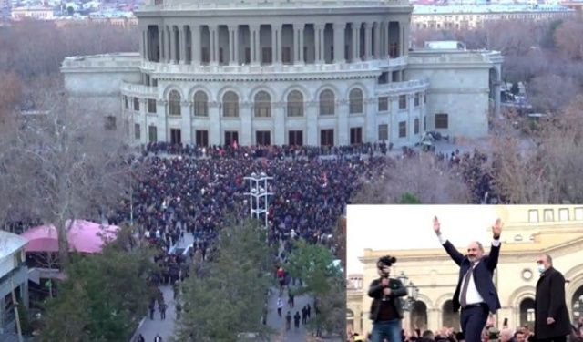 Ermenistan ordusunun, Başbakan Nikol Paşinyan'a yönelik istifa çağrısının ardından iktidar ve muhalefet yanlıları, başkent Erivan'da miting yaptı.