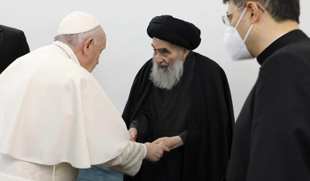 Papa Franciscus, Irak ziyareti sırasında Şii dini merci Ali es-Sistani ile görüşmesine ilişkin, "Kendini Tanrı'ya adamış, büyük ve bilge bir ...