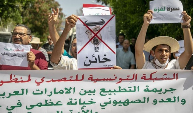 Tunuslular, Birleşik Arap Emirlikleri ile İsrail arasındaki normalleşme anlaşmasını protesto etti.