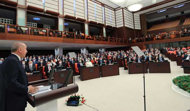 TBMM'nin 27. Dönem 5. Yasama Yılı açılışında konuşan Cumhurbaşkanı Erdoğan, Azerbaycan'dan Libya'ya, Suriye'den Doğu Türkistan'a dünyanın dört bir yanındaki Türk ...