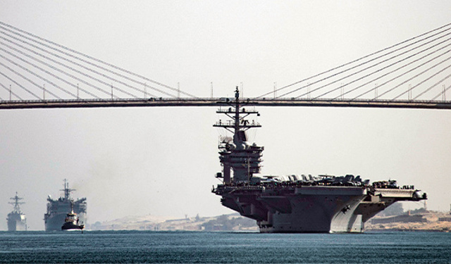 ABD'ye ait USS Eisenhower uçak gemisi ve beraberindeki savaş gemileri, Doğu Akdeniz'deki faaliyetlerinin ardından Süveyş Kanalı'ndan geçti.