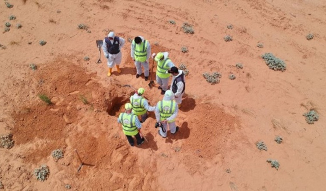 AA ekibi, Libya'nın doğusundaki gayrimeşru silahlı güçlerin lideri Halife Hafter'e bağlı milislerden kurtarılan Terhune vilayetinde ortaya çıkarılan toplu mezardaki kazı ...