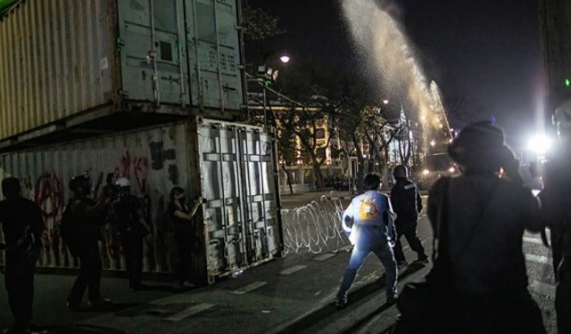 Göz yaşartıcı gazdan etkilenen bazı protestocular ise etraftaki dükkanlara sığınırken görüntülendi.