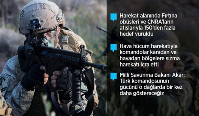 Harekat, Kara Kuvvetleri Komutanlığı Harekat Merkezi’nde brifing alan Akar ve komutanların talimatlarının ardından başladı. Akar ve komuta kademesi, operasyonu sabahın ilk ışıklarına kadar sevk ve idare etti. Akar ve komutanlar zaman zaman video konferans yöntemi ile bölgedeki birliklerin komutanlarıyla görüşerek talimat verdi.