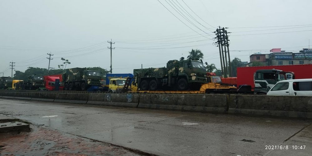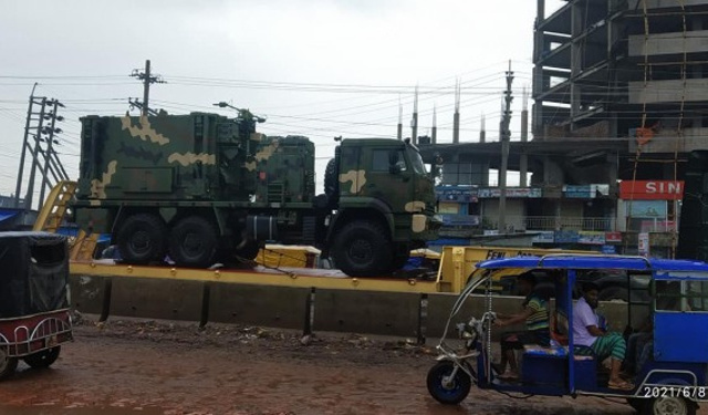 Defense Technology of Bangladesh-DTB tarafından paylaşılan görsellerde TRG-300 KAPLAN Füze Sistemi’ne ait parçalar Bangladeş sokaklarında tır ile taşınırken görülüyor. Geçen hafta da Bangladeşli sosyal medya kullanıcıları, TRG-300 KAPLAN Füze Sistemi’nin fırlatma aracı, komuta aracı ve füze yükleme aracının nakliye esnasında çekilmiş görüntülerini paylaşmıştı.