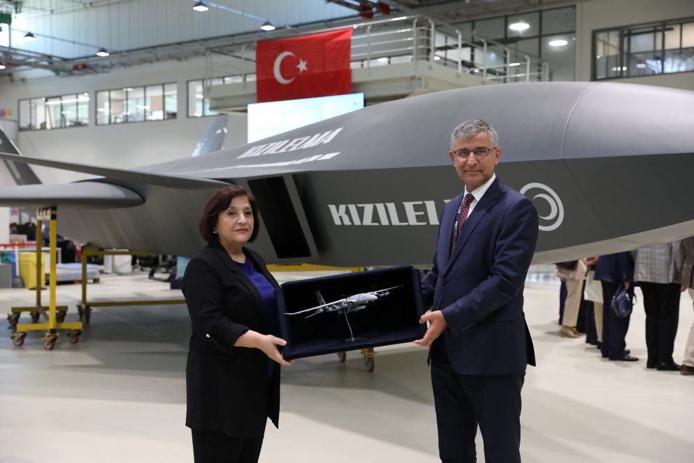 Meclis başkanlarına ziyaretin anısına Bayraktar AKINCI TİHA maketi takdim edildi.