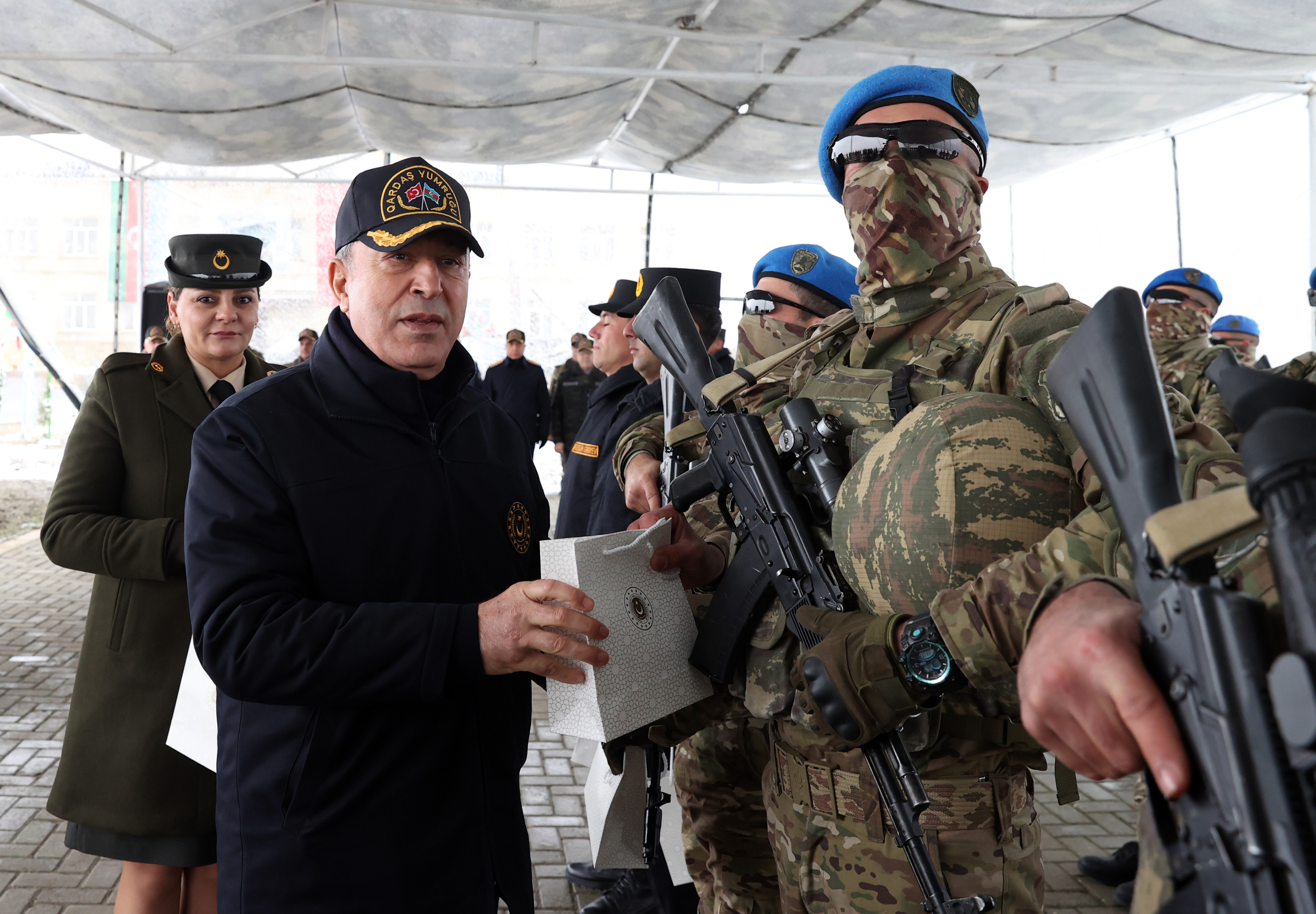 Azerbaycan Savunma Bakanı Orgeneral Zakir Hasanov ile Azerbaycan Silahlı Kuvvetleri Komuta Kademesinin de katıldığı tatbikatın sonunda Bakanlar Akar ve Hasanov personelle bir araya geldi.