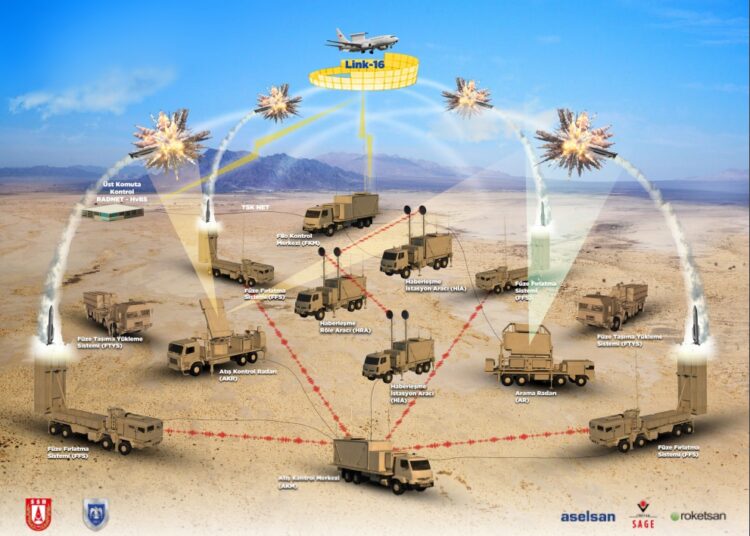 - Katmanlı hava savunma sistemlerimiz ile tüm algılayıcı ve silahlarımızın bir ağ yapısı altında birbirleriyle entegre çalışması, ortak hava resminin oluşturulması, gerçek zamanlı olarak harekât merkezlerine ulaştırılması ve yapay zeka destekli olarak karar vericilere sunulmasını temin eden yerli ve millî olarak geliştirmekte olduğumuz ÇELİK KUBBE Projesi,