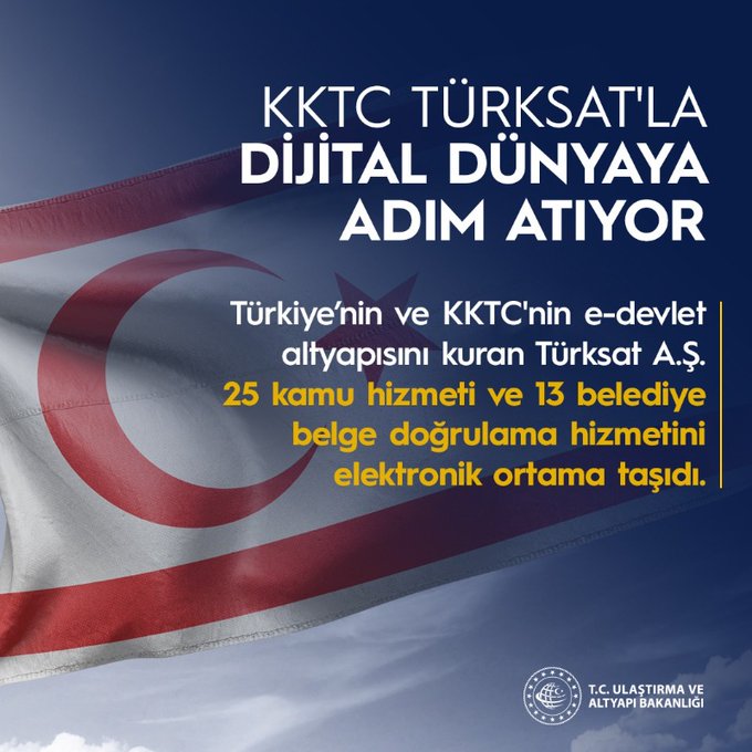 Ulaştırma ve Altyapı Bakanlığı’ndan yapılan yazılı açıklamada, “TÜRKSAT’ın ana yüklenicisi olduğu e-KKTC projesi ile tüm kamu hizmetleri elektronik ortamda vatandaşlara sunularak, vatandaşa en kolay ve en etkin yoldan, kaliteli, hızlı, kesintisiz, güvenli ve entegre bir yapıda sunulmasına yönelik altyapının ülke düzeyinde oluşturulması hedefleniyor. KKTC, e-Devlet altyapısı ile adada büyük sorun olarak gösterilen bürokrasiyi sona erdirmeyi planlıyor.” denildi.