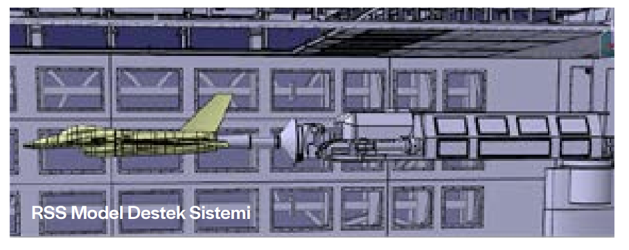 Model destek sistemleri (Model Support Systems / MSS), modeli rüzgâr tünelinde konumlandırmak için kullanılıyor. Modeller, test tipine ve kullanılan balansa bağlı olarak model destek sistemlerine arka veya alt taraftan monte ediliyor. Uzaktan kontrol edilebilen bu sistemler, modellerin testi kesintiye uğratmadan yunuslama (pitch), yatış (roll) ve sapma (yaw) hareketleri yapmasına olanak tanıyor.