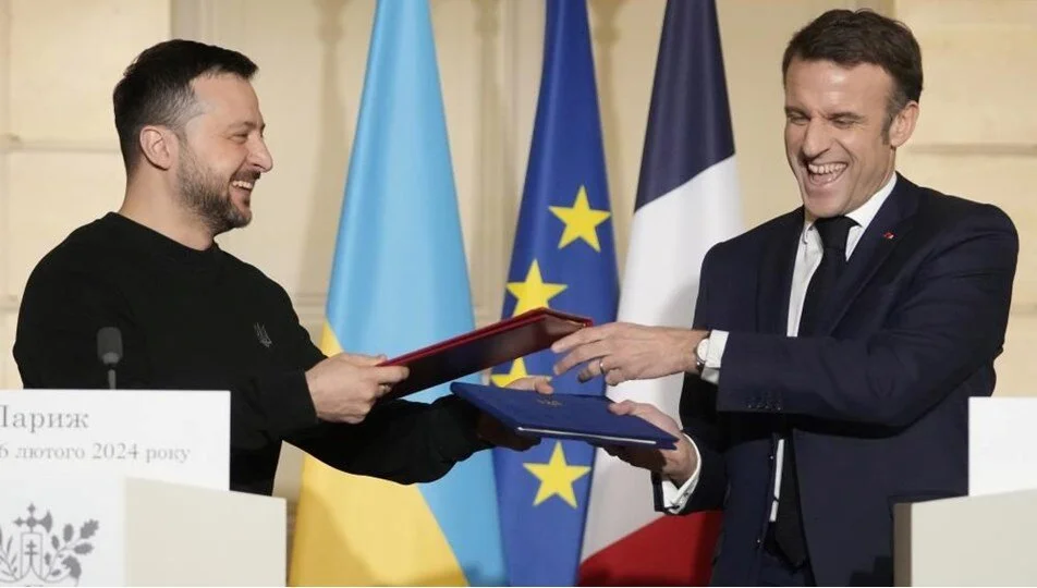 Aynı günün ilerleyen saatlerinde ise Ukrayna Cumhurbaşkanı Zelenski ve Fransa Cumhurbaşkanı Emmanuel Macron arasında bir zirve gerçekleştirildi. Bu zirvede de, tıpkı Almanya ile yapılan anlaşma gibi bir temelde, Ukrayna ve Fransa arasında bir güvenlik anlaşması imzalandığı duyuruldu.