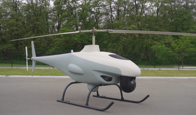 Ukraynalı savunma firması Ramzay, Kiev’de gerçekleştirilen fuarda insansız saldırı helikopterini tanıttı.