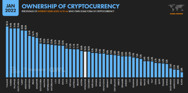 Kripto para birimlerine sahip kişilerin sayısının yüzde 37,8 arttığına yer verilen raporda, her 10 internet kullanıcısından 1’inin artık bir tür kripto para birimine sahip olduğu ve bu rakamın Tayland’da 2/10’den fazla olduğu belgelendi.