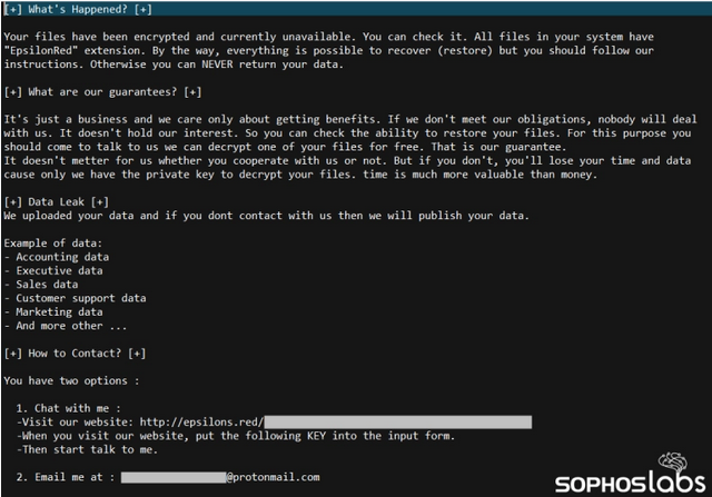 Araştırmacılar fidye yazılımının REvil’e benzediğini ancak Epsilon Red’in daha iyi yazımlara sahip olduğunu duyurdu.