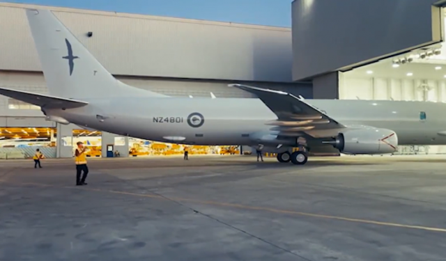 Boeing tarafından yapılan açıklamada, Yeni Zelanda Kraliyet Hava Kuvvetleri tarafından sipariş verilen 4 adet P-8A Poseidon deniz karakol uçağının ilkinin boyahaneden çıktığı ifade edildi.