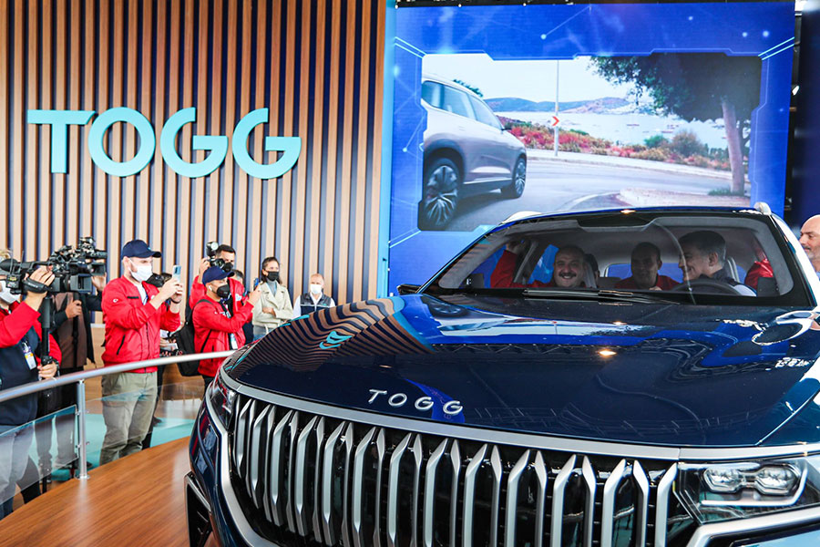 Birbirinden farklı birçok alanda ürünlerin görücüye çıktığı 4’üncü Havacılık, Uzay ve Teknoloji Festivali’nde Türkiye’nin yerli elektrikli otomobili TOGG da sergilendi.