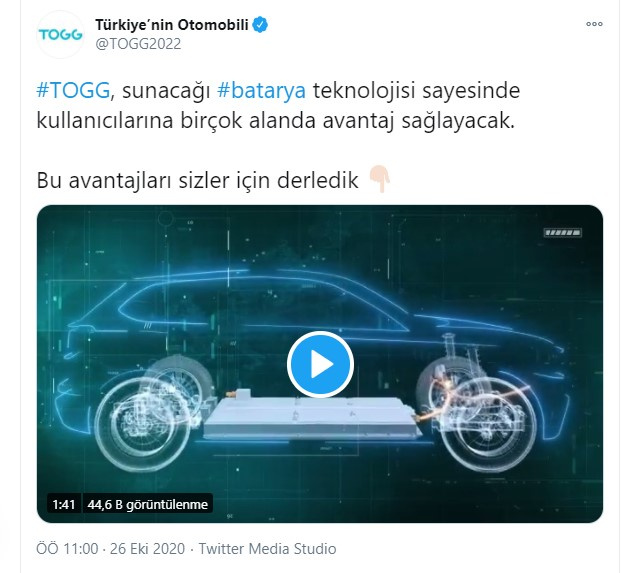 Türkiye’nin Otomobili’nde kullanılacak bataryanın rakiplerine göre daha uzun menzil avantajı sağlayacağı bildirildi. Türkiye’nin Otomobili Girişim Grubu TOGG’un Twitter hesabından “TOGG, sunacağı batarya teknolojisi sayesinde kullanıcılarına birçok alanda avantaj sağlayacak” notuyla, “Batarya Teknolojilerimiz Hakkında Detaylar” konulu bir video paylaşıldı.