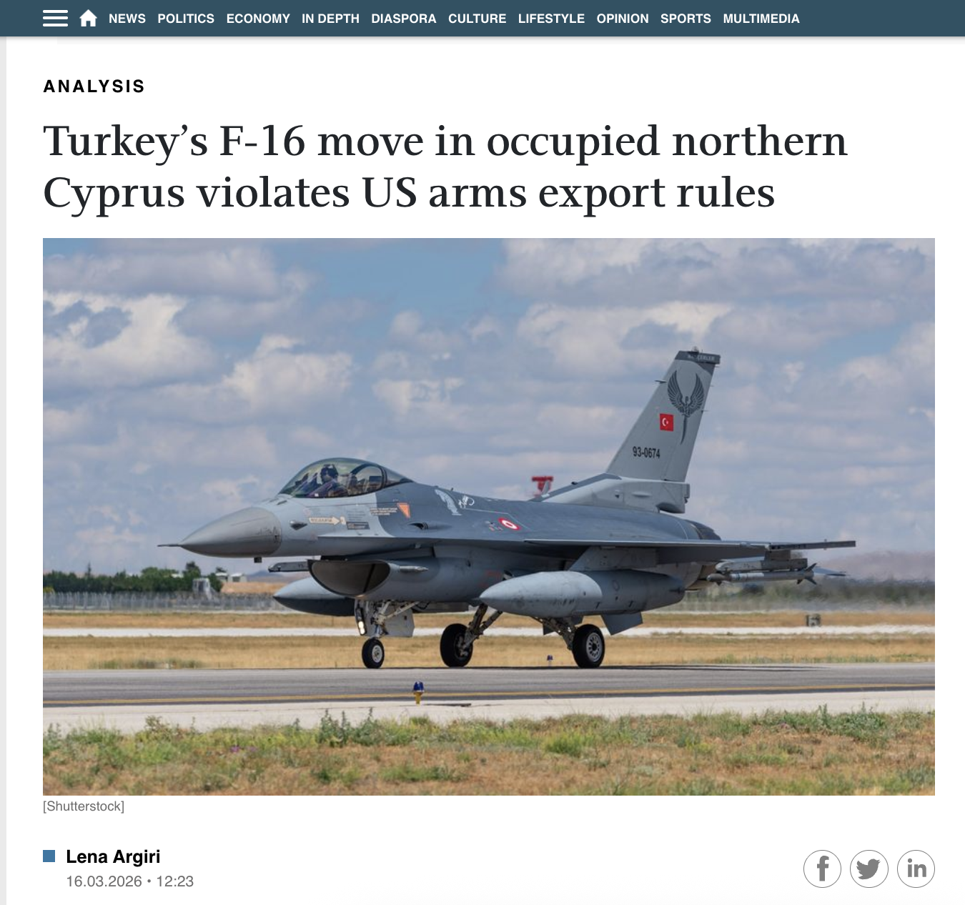Yunanistan’ın önde gelen gazetelerinden Kathimerini’de yayımlanan bir analizde, Türkiye’nin F-16 savaş uçaklarını Kuzey Kıbrıs’a konuşlandırmasının ABD’nin savunma ihracatını düzenleyen yasal çerçevesi açısından tartışma yarattığı iddia edildi. Gazeteye konuşan ve konunun hukuki altyapısına hâkim olduğu belirtilen kaynaklar, söz konusu adımın siyasi ve hukuki açıdan önemli sonuçlar doğurabileceğini öne sürdü.