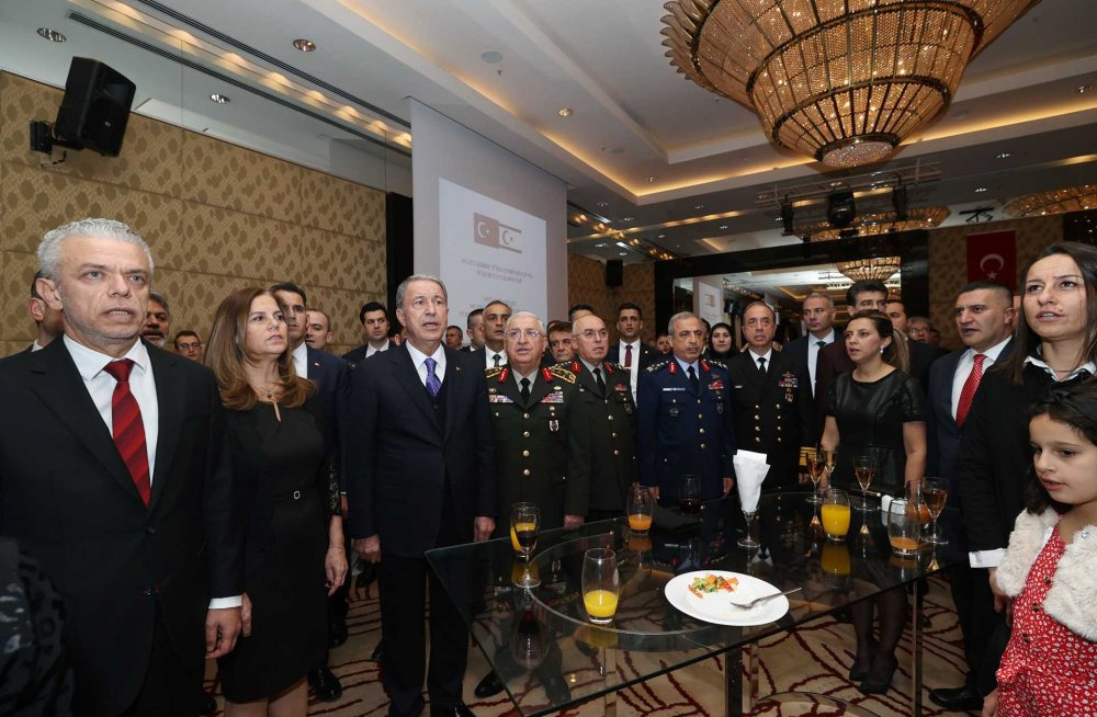 Millî Savunma Bakanı Hulusi Akar, beraberinde Genelkurmay Başkanı Orgeneral Yaşar Güler, Kara Kuvvetleri Komutanı Orgeneral Musa Avsever, Deniz Kuvvetleri Komutanı Oramiral Ercüment Tatlıoğlu, Hava Kuvvetleri Komutanı Orgeneral Atilla Gülan ve Millî Savunma Bakan Yardımcısı Alpaslan Kavaklıoğlu ile Kuzey Kıbrıs Türk Cumhuriyeti’nin 39’uncu kuruluş yıl dönümü resepsiyonuna katıldı.